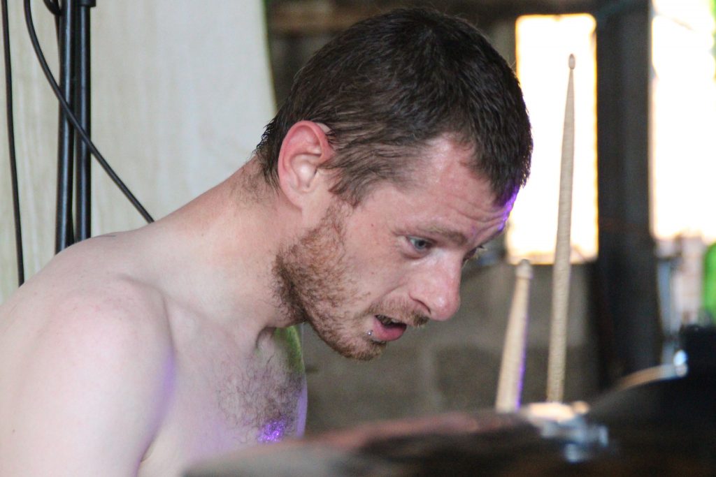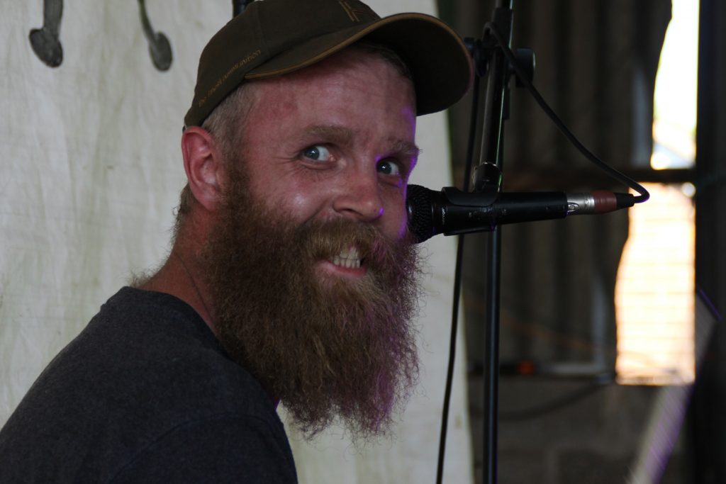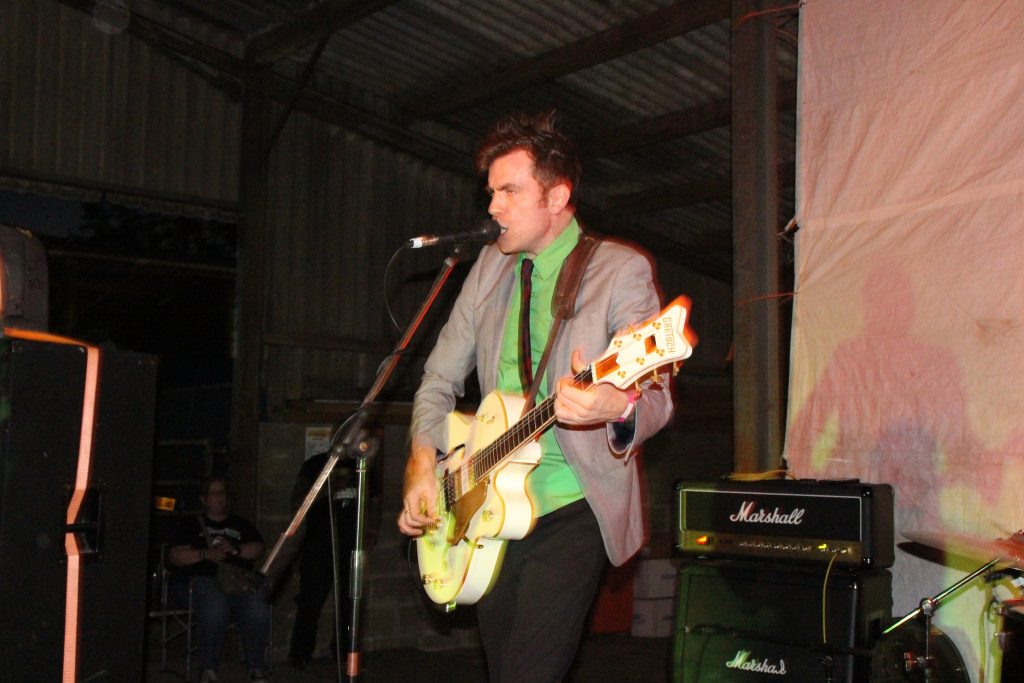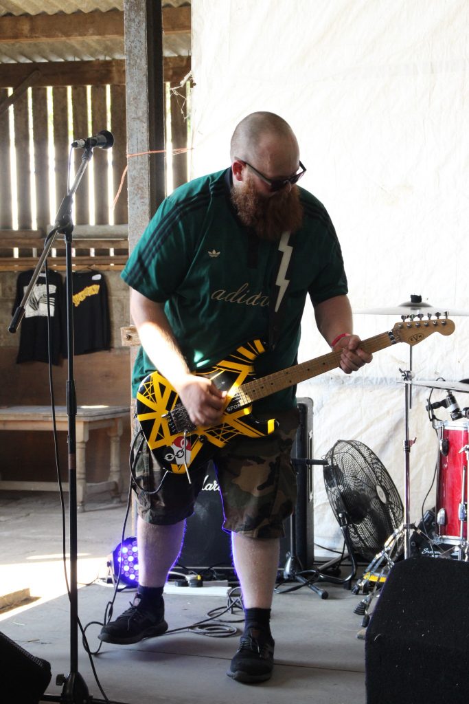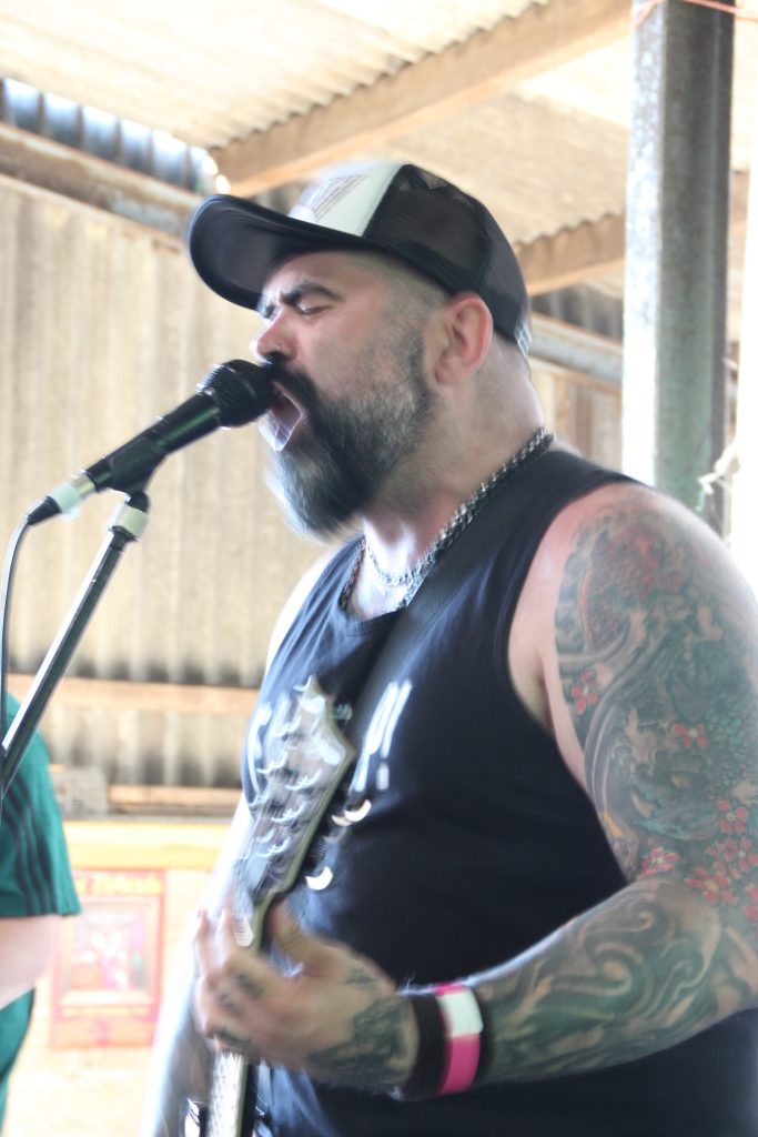 After the usual hour or so setting up, our usual crowd, minus a couple, were all sorted, a few tinnies later, and we wander off down to the cow shed. Yes, a cow shed. Very briefly, Mick the farmer, Kirky and Trina set up this little soiree a number of years ago. As Mick can’t make to the gigs being a working farmer, he decided to clear out a cow shed, and field for the campers and put on gigs themselves. So, off we go. On entering the shed, the sweat was dripping off us, the heat not helped by the semi enclosed space, but didn’t make any difference to what was to come.