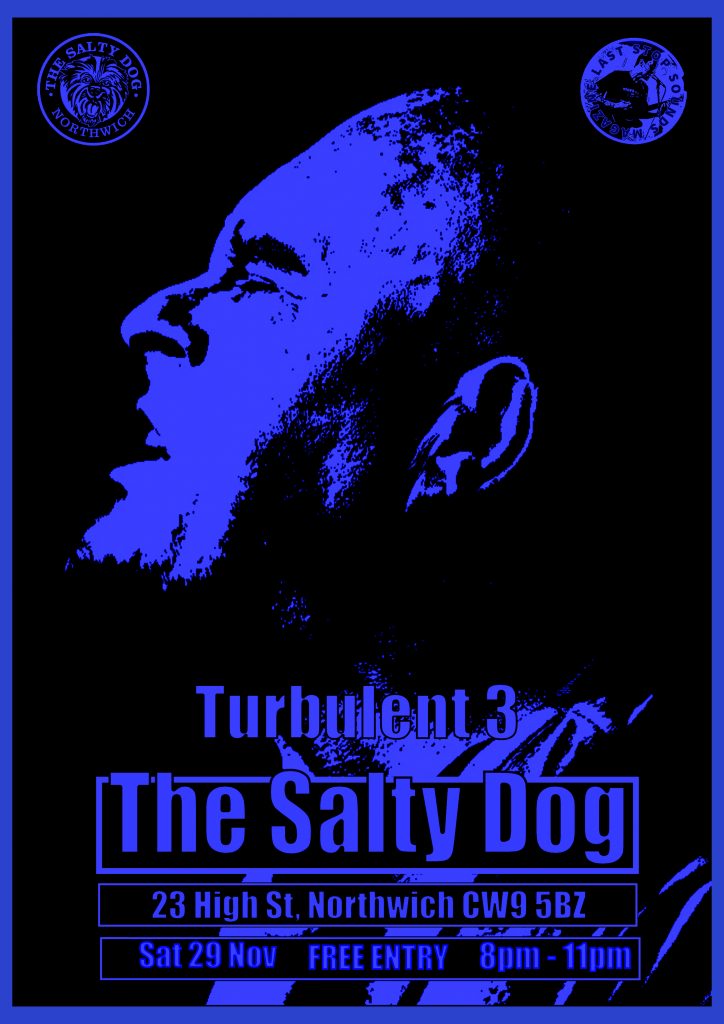 Our 5th and final band announcement for Saturday 29 November at The Salty Dog Northwich: Turbulent 3