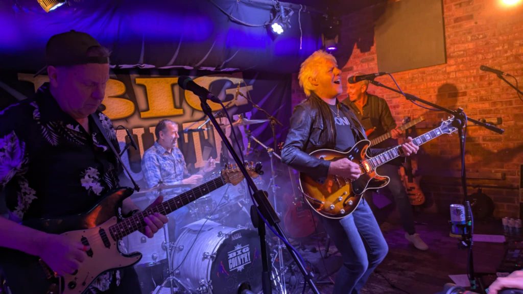 Simon Hough vocals , Mark Brzezicki Drums ,Gil Allen ex The Skids but has been in Big Country for 7 years on fretless bass. On lead Guitar was Ken Nicol ex Steeleye Span. A thoroughly enjoyable sing-along was had by the near capacity crowd.