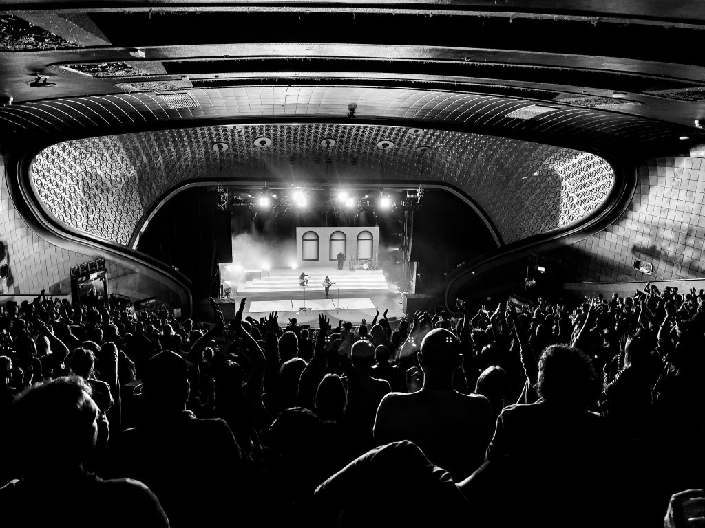 Joy Division meets funk, Peter Cat Recording Co. seem aptly at home in the Manchester Apollo. They have knack of spawning great grooves but keeping it downbeat, almost melodies and sparse yet complex sounds mixed in. They open the night with a great show of near disco, near indie sounding vibes that are intoxicating and deep.