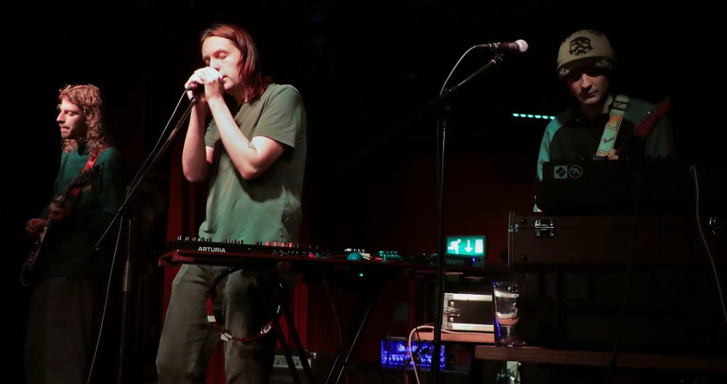 Cinder, even with a borrowed in drummer for the night, produce a wealth of shoe gazing type noise. The twin guitar and synth lineup hit up a My Bloody Valentine wall of noise that has grungy guitar riff undercurrents and a depth of half heard half felt melodic tidal wave sound. The vocals vary from deadpan Krautrock delivery to passionate full on rock. The guitarists read each other and complement each other well with fluid yet jagged layers. A complex sound with hidden depths that draw the listener in.