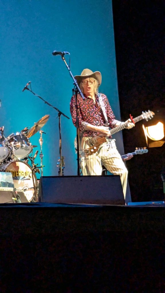 The Waterboys opened their set with ‘A Pagan Place’ and ‘Glastonbury’ and had to listen to a fan bellowing “Whole Of the moon”. The response “I hope your not a track high goer” sent ripples of laughter around had the audience clapping. They continued with quality album tracks and a rousing performance of ‘This Is The Sea’. Mike Scott seemed to change his guitars every other track.