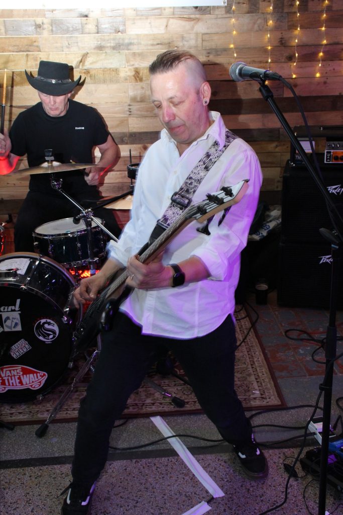 Having chatted with Jane for a short while, we eagerly awaited the first band Chasers 3 . As you may have guessed, this is the 3rd incarnation of the band, led by singer/guitar Les Clarke with Tony ‘Fen’ Fennel (bass and vocals) Jeff Ikin (drums). The original band played many a gig up and down the country, mainly concentrating on the north and north west. Theyre a kind of split between melodic rock with a hint of punk thrown in now and again with undertones of early garage rock. So off they went, a storming set. Les belting out old and new tunes, Fen with his solid sounding bass line and of course Jeff keeping the beating heart of the band in time with perfectly orchestrated drum work, a fine set indeed, and a decent audience considering the early start of 7pm.