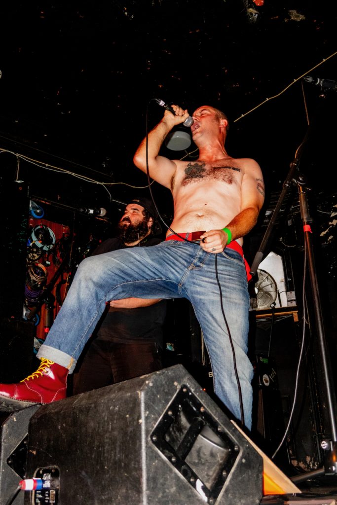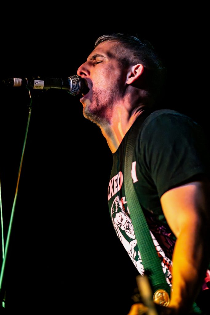 Zero Tolerance come from a similar stock as Afflicted but their take on it was more measured, a slightly slower pace generally with some great chant along choruses and full of street punk confidence. There’s some nifty guitar work adding ear catching tunefulness before roaring into full on punk. The singer has the ear of the crowd who are by now starting to bounce around in front of the stage. Extremely tight and well put together with a bass lines that move along at a fair old pace – none of your roots notes here but a genuine rock n roll bounce.