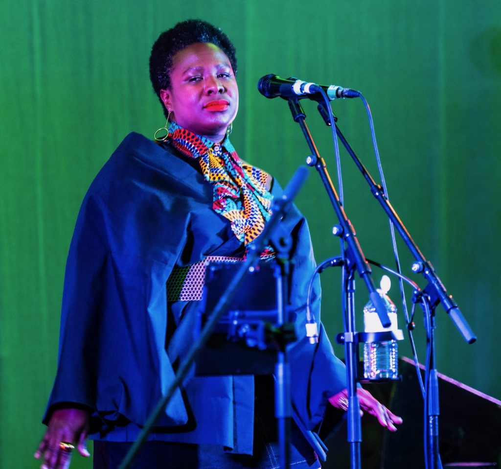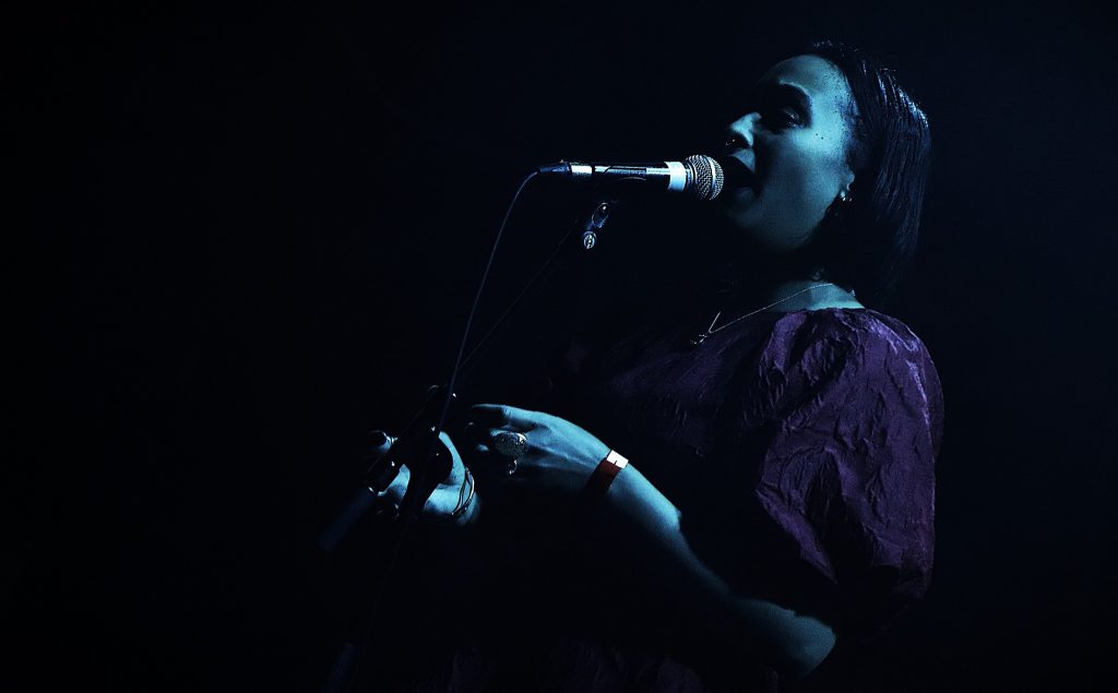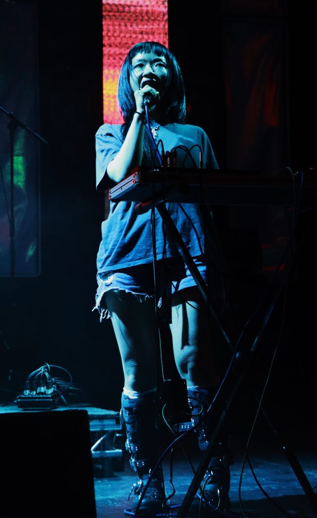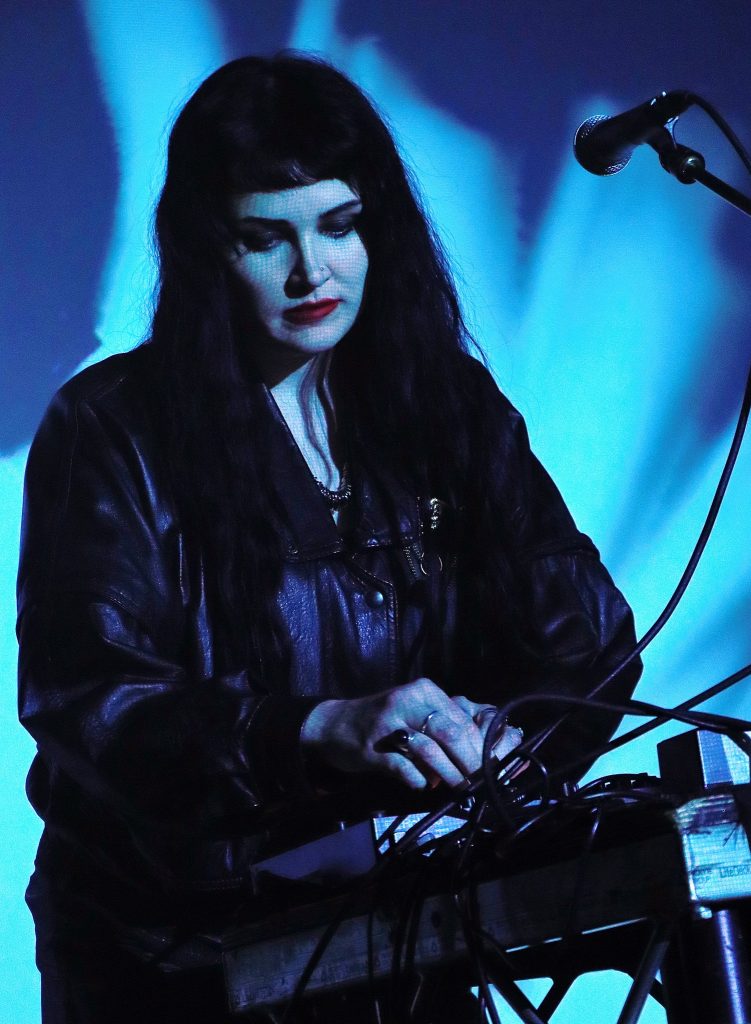 Jezebel, solo, in near dark with fleeting back projections illuminating occasionally is at the IWF Bar Stage. The sound is dripping in Berlin noise experimentation, there’s a rush of sonics and beats but there’s a gentler melodic core in there too. Ghostly and a fair bit mesmerising.
