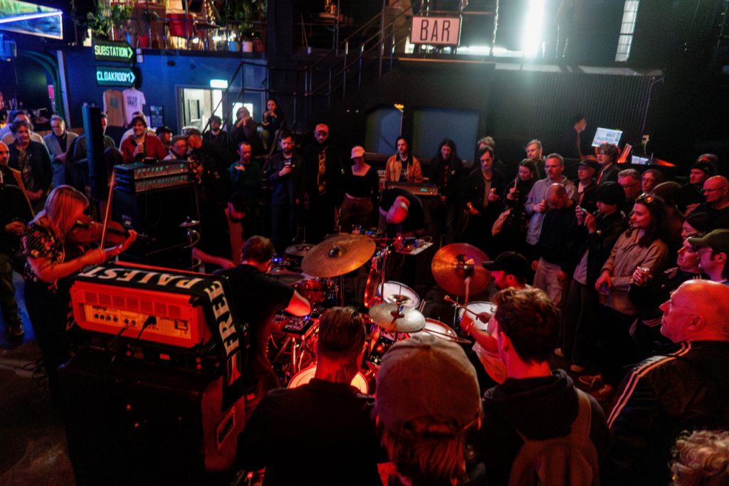 It’s a coming together of groups and tribes in Liverpool that has created this gig. The Quarry group, despite having shut down their venue recently, have transported their entire stage set up and PA to Make Liverpools large warehouse next to the Invisible Wind Factory (IWF) and are active hosting musicians throughout, the Wind Factory itself uses its smaller bar stage o the Saturday and then the larger full room on the Sunday. The throng of folk attending shuffle between the different locations and associated yard areas.