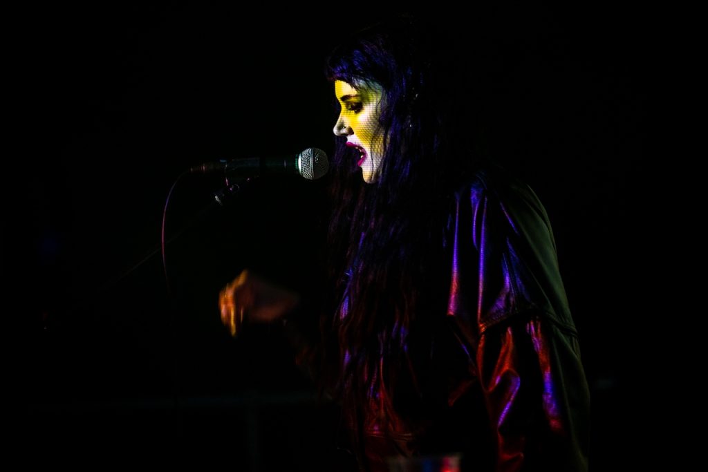 First on the IWF bar stage is the experimental electronica of J0wday. The duo, vocalist talking to, screaming and whispering at the audience and a electronics person hitting up beats and experimental sounds. A convincing performance, charged with emotion and fascinating to experience.