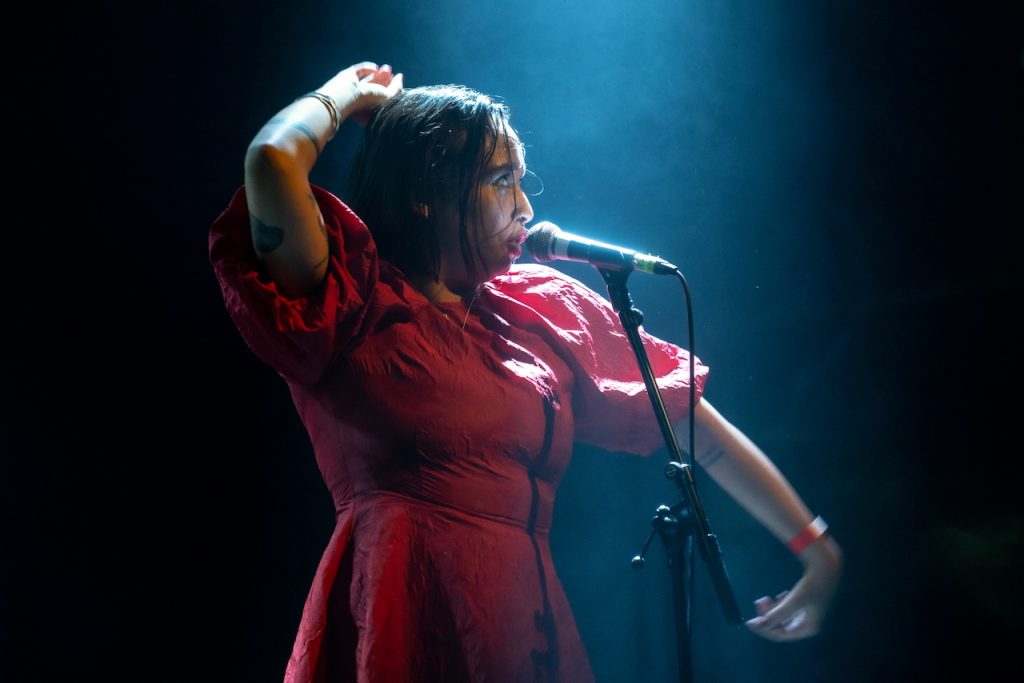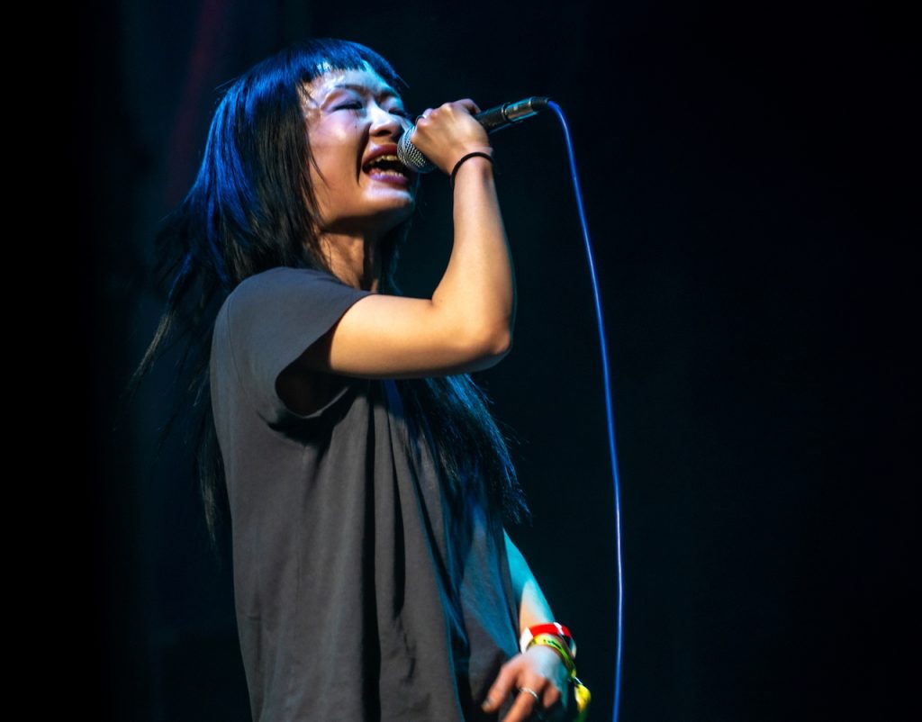 In between the acid raves and industrial soundscapes Mandy, Indiana have it all under control. They deliver an odd beauty, like finding a pretty flower on the banks of an disused industrial canal or a smoggy sunset over factories. Aside from the broken drumbeats and whooshing sound effects there are som discordant then fantastic bits of guitar, it moves to sonically different shapes faster than you can keep ups with and they play with emotions with some fantastic charged vocals that can deliver pretty melodies on second then reach inside your soul the next with sharp knives of screams and shrieks. Draining to watch and you can’t help but become immersed in the experience they deliver.